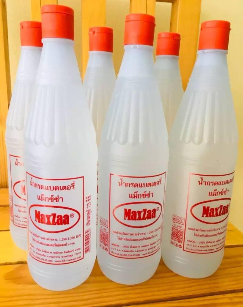 3. น้ำกรด เป็นส่วนประกอบแบตเตอรี่ที่สำคัญเป็นอย่างยิ่งนะคะ เพราะตัวน้ำกรดนี้จะคอยทำหน้าที่ทำให้แผ่นธาตุบวกและแผ่นธาตุลบเกิดปฏิกิริยาทางเคมีจนเกิดกระแสไฟฟ้าและแรงเคลื่อนไฟฟ้าขึ้นมาได้